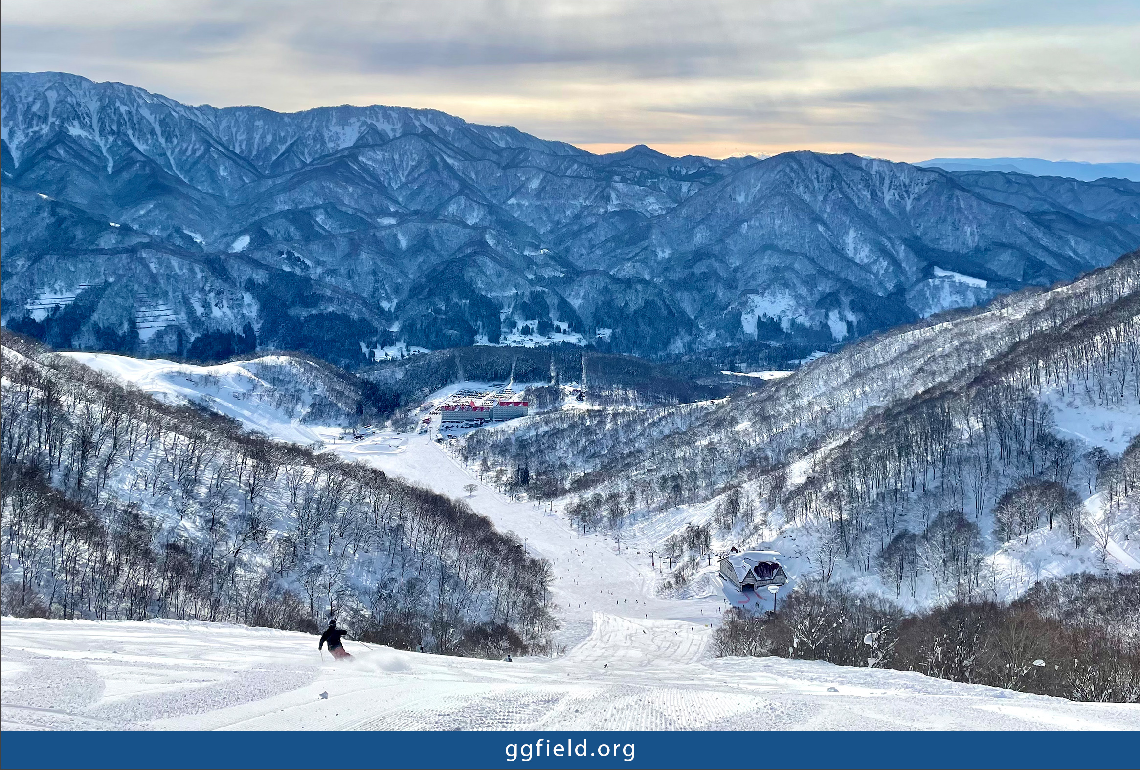 - 板平トップからの眺め。朝イチの綺麗な圧雪バーンをGetできました。